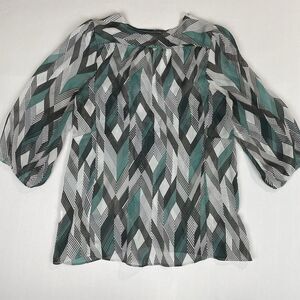 Banana Republic Semi Sheer Top Women's Size XS Grey Green Black Chevron Print Classic Office Workwear.
