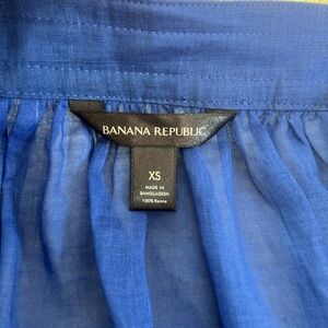 Banana Republic Square Neck Ramie Blouse Semi-Sheer Balloon Sleeves | Blue | XS