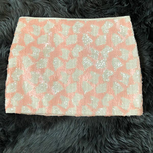 Banana Republic Sequin Mini Skirt Pink Blush Cream Lined Zip sz 14 $138 NWT!
