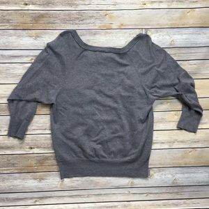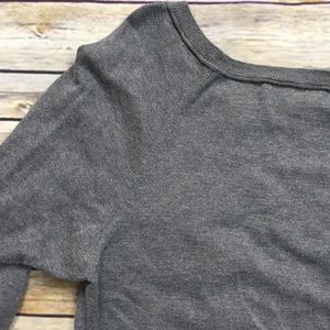 Banana Republic Sequin Stripe Sweater. Size small. Features a 3/4 sleeve, gray body and silver sequined stripes on the front. Raglan sleeve scoop neck. Great condition and an excellent sweater for the holidays. 85% Pima Cotton, 15% Merino Wool. Bust 17.5", Length from shoulders 22.75", sleeves from collar 20". Offers welcome! {20}