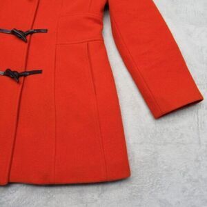 This Banana Republic Wool Blend Jacket is designed for women in size PXS. The jacket features a vibrant orange color with a toggle and zip front closure, making it suitable for various occasions like travel, casual outings, or business settings. It is a mid-length overcoat style with long sleeves and a fleece fabric type, perfect for staying warm in the winter, fall, or spring.