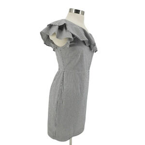 Banana Republic Sheath Dress Seersucker Striped Ruffle One Shoulder Sundress