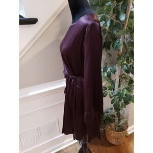 Banana Republic Sheath Dress Womens XS Purple Midi Satin Long Sleeve Tie Waist