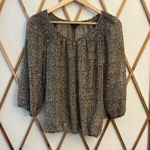 Banana Republic sheet peasant blouse. Gathered bottom and 3/4 balloon sleeves. Khaki pattern. Size PM