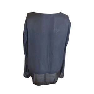 Banana Republic Sheer Satin Blouse V Neck Pleated Blouse Black Sz XL