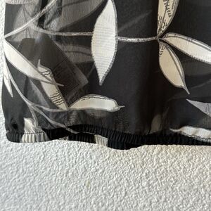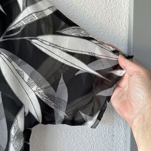 Banana Republic Sheer Short Sleeve Blouse Leaf Pattern Black Women’s Size Large