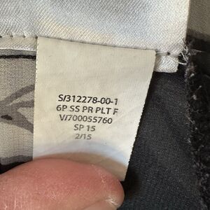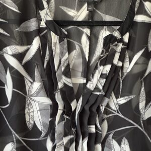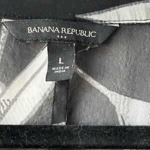 Banana Republic Sheer Short Sleeve Blouse Leaf Pattern Black Womens Size Large Underarms across the back 24 Collar to hem down the back 27.5 100% Polyester