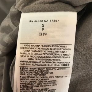 Excellent condition sheer Tunic by Banana Republic. This adorable, fun, chic Top could be worn as Career or casual apparel. Gray sheer color with a fun design on the back and top of the front. Measurements: Size S, Shoulders 16 1/2", Sleeves 24", Length 27", Chest 41" 100% polyester.