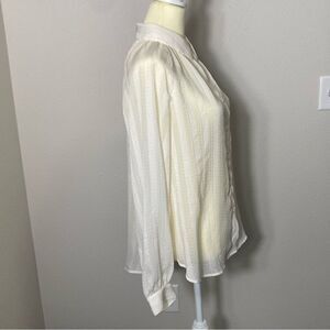 Banana Republic Sheer Vertical Striped Ivory Button Up Blouse Women's Size Large