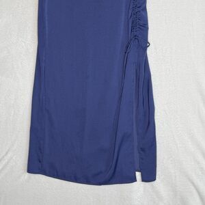 Banana Republic Shirred Waist Slit Midi Skirt Granite Blue Size 4 Slip Skirt