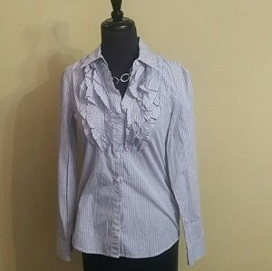 Bluish and white Banana Republic printed checkered shirt it's gorgeous. It has a tuxedo shirt feel to it. Good condition.