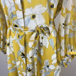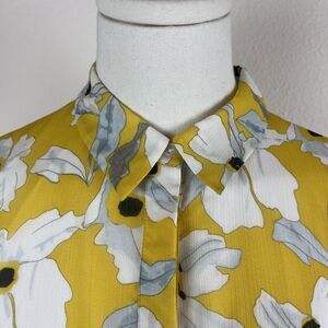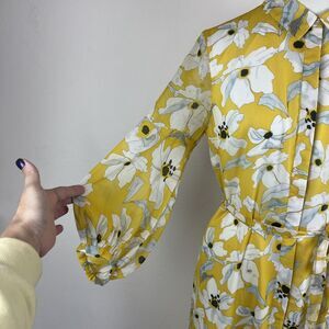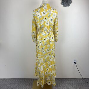 Banana Republic Shirt Dress Womens 6 Yellow Floral Maxi Ruffle Cottage Fairy