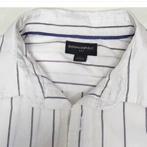 Banana Republic Shirt L Cotton White Navy Stripe Button Front Long Sleeve Pocket
