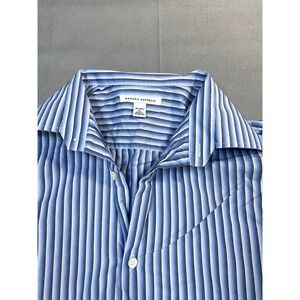 Banana Republic Shirt Mens Large 16 16 1/2 Blue Striped Casual Long Sleeve