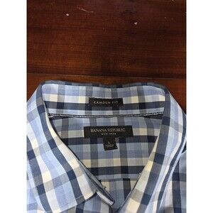 Banana Republic Shirt Men's Large Camden Fit Blue Gingham Plaid Non Iron Cotton