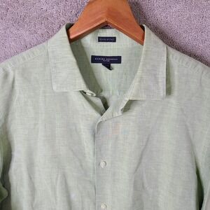 Banana Republic Shirt Mens XL Green Linen Blend Fitted Button Up Long Sleeve