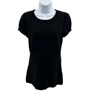 Banana Republic Shirt Women's Size Small – Black, Fitted Pullover, Round Neck, Short Sleeve, Stretchy Fabric, Cotton Blend, Semi Puffed Short Sleeve, Button Back Closure, Comfortable and Form-Fitting, Versatile Casual or Officewear Top, Soft and Breathable for Everyday Wear.