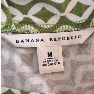 Banana Republic Shirt Women's Medium Green Cream 100% Lyocell Retro Mod Diamond