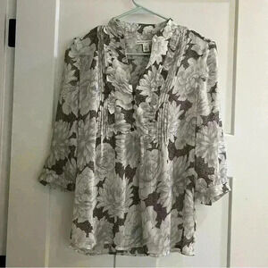 Banana Republic Shirt Women’s SizeXS Floral Pullover Pleat Front Top, Buttons