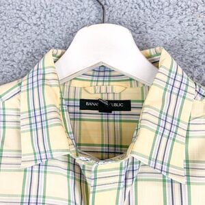 🔥Banana Republic Shirt Mens Medium Yellow Plaid Dress/ Casual 100% Cotton 🔥