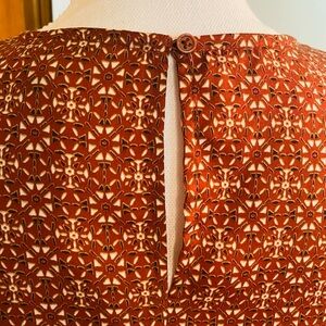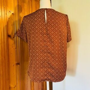This Banana Republic blouse features a lovely pattern, perfect for adding a pop of color to your wardrobe. The short sleeves and classic design make it an ideal choice for both casual and dressy occasions. It’s lightweight and made with attention to detail, this top offers a comfortable fit and a stylish look.