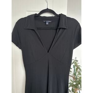 Banana Republic Short Sleeved Collared Deep V-Neck Midi Empire Waist Dress, Med