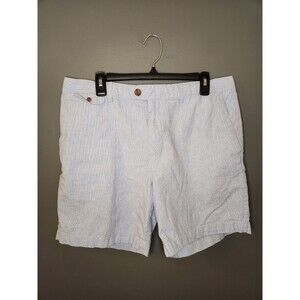 Banana Republic Shorts Men's 35 Blue Striped Linen Blend 7" Chino Casual Preppy