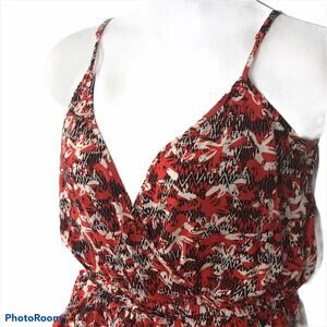 Banana Republic Red Black Floral Romper Faux Wrap Adjustable Straps Size Small
