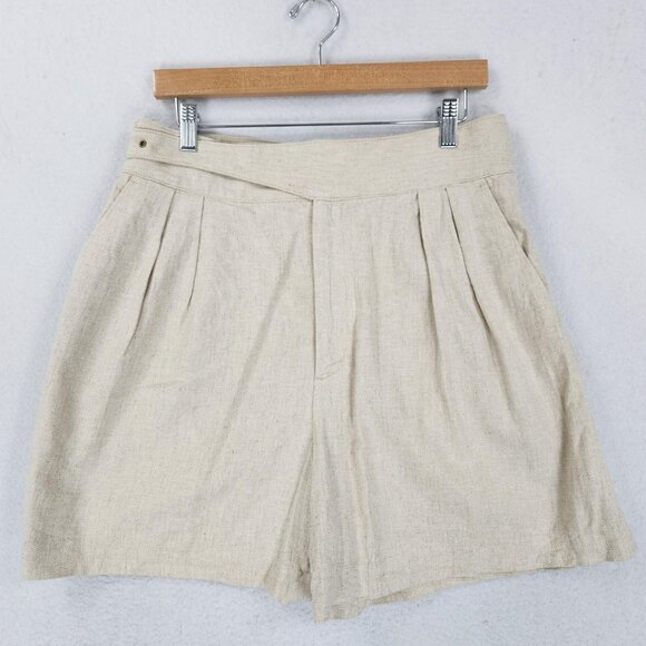 Banana Republic Shorts Womens 10 Cream Herringbone Linen Blend Pleated High Rise