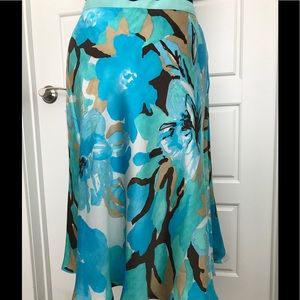 Gorgeous a-line skirt. Shell: 100% Silk. Lining: 100% Acetate. Dry Clean only. Sits at true waist and hits at knee. Stored in smoke environment.