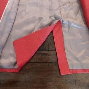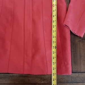 This beautiful long jacket from Banana Republic is perfect for any occasion. The jacket features a zip closure and is made of a silk blend material in a coral salmon color. It is brand new with tags and comes in size XS. The jacket has a solid pattern and a cotton lining material.