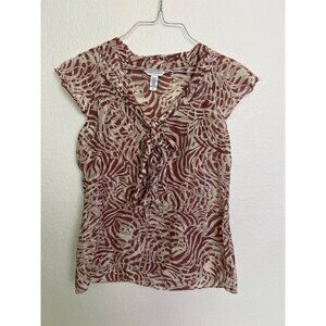 Banana Republic Silk Blend Blouse Sheer Tie Front Popover Animal Print S