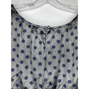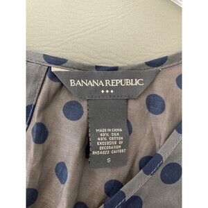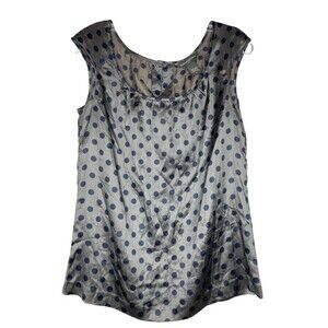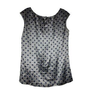 Banana Republic Silk Blouse Women Small Gray Navy Blue Polka Dots Cap Sleeve