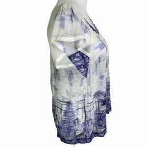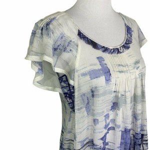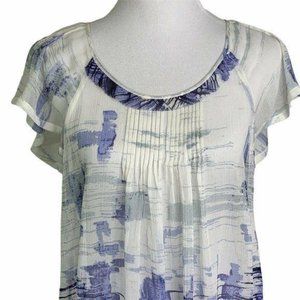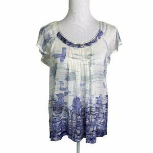 Banana Republic 100% Silk White Blue Print Scoop Neck Pleated Top Womens S NWT