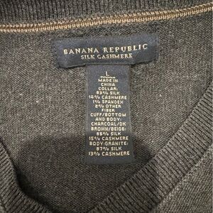 Banana Republic Silk Cashmere Argyle V-Neck sweater brown gray