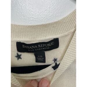 Banana Republic Silk Cashmere Crewneck Sweater Cream Stars America 4th Women XS