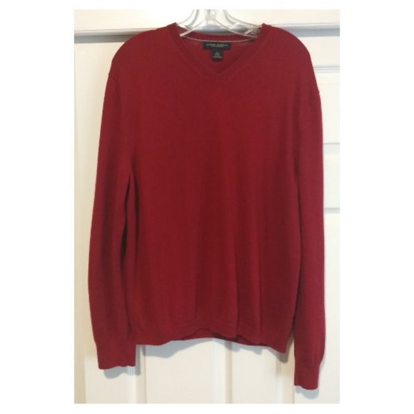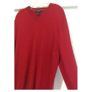 Gorgeous silk and cashmere lightweight v-neck sweater in a deep red color. Great for the office, home or just running around town. Stay comfortable on those days where an extra layer of warmth (and luxury) is wanted.