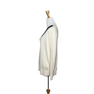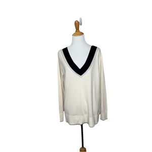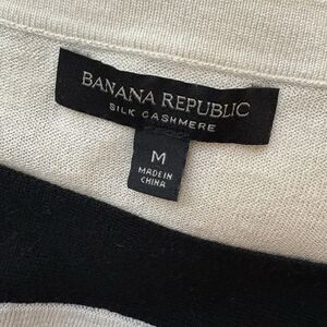 Banana Republic Silk Cashmere V-neck Sweater Cream Beige Womens Medium Blouse. In good conditon. V neck. Black accent around the neck. 85 % silk / 15 % cashmere. Pull over.