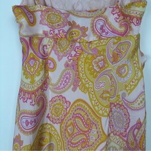 Banana Republic Silk Dress Size 2 Petite Pink Paisley Babydoll Ruffle Y2K