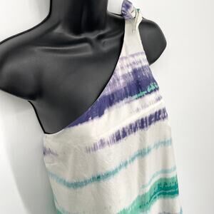 Banana Republic Silk Muted Stripes One Shoulder Mini Dress Sz 14 Multicolor