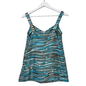 Banana Republic Silk Ruffle Front Tank Top Teal Brown Grey Women’s Size 2