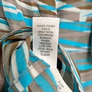 Banana Republic women’s silk ruffle front tank top in blue teal, brown and grey colors. Size 2.