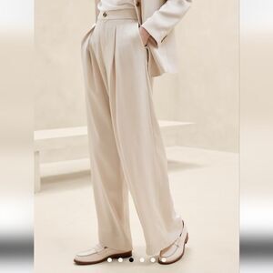 New with tags Banana Republic Silky Pleated Wide-Leg Pants. The color is a very light cream or Ivory White called Oyster Pearl.