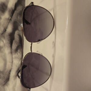 Enhance your accessory collection with these Banana Republic silver aviator sunglasses. Featuring a sleek metallic frame and gradient lenses, they offer both style and functionality. The classic double bridge design adds a timeless touch to any outfit.