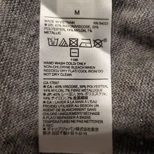 Really classy cap sleeve top in a sparkly silver material. The real stunner about this top is the backless design which drapes beautifully. Worn once. Size medium.