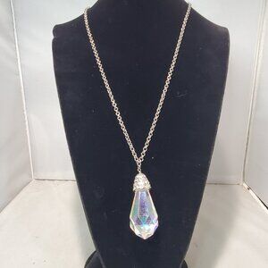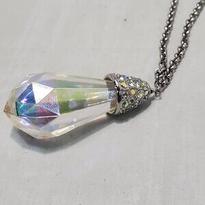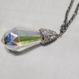 Banana Republic necklace features a silver-toned chain suspending a prominent pear-shaped crystal pendant, which is elegantly accented with a cap of small rhinestones. It offers a sparkling and sophisticated design.