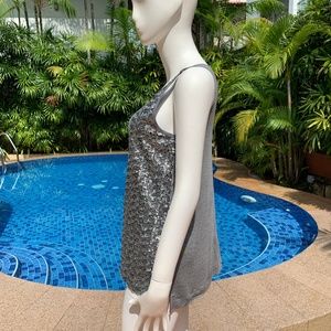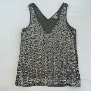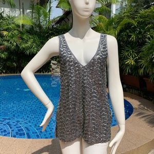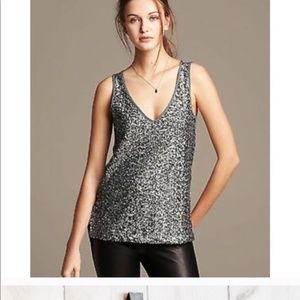Banana Republic Silver Sequin V Neck Tank Medium Sparkly Holiday Comfortable