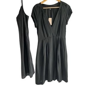Banana Republic Petite 100% Silk Fully Lined Black Midi Pleated Dress