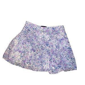 Banana Republic Size 2 Tiered Blue and Pink Floral Lined Faux Silk Asymmetrical