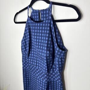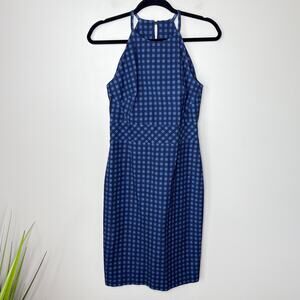 Banana Republic Size 4 Bi-Stretch Racer-Neck Sheath Dress Blue Gingham Summer
